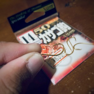 場合によってはアジ針10号や前述した袖針なども使っていまーす。最近は色々な種類の針を試して使っています。