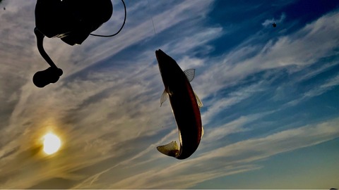 3回ほど追ってきている当たりがあったので少し引くスピードを遅くしてみると乗りました!