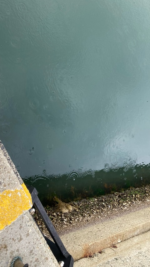 餌を撒くとほぼ同時に付近の水面に波紋が現れました。