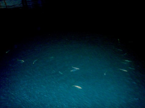明かりがある釣り場なら夜間でも目を凝らせば泳いでいるアジを確認することができます。