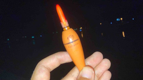 上のような電気浮きに重りと気持ち大きめの針をつけて狙います。