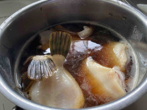 刺身にして食べてもよかったですが捌くのが面倒なので鍋にぶち込んで煮付けにしました。