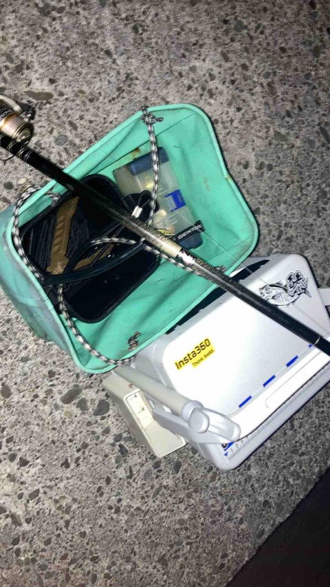 釣り場に到着。荷物を置いて準備を始めます。