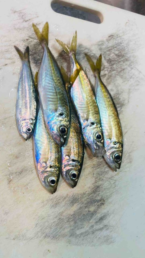 釣れたのは先ほど師匠が釣ったアジよりも一回り小さいあじ。