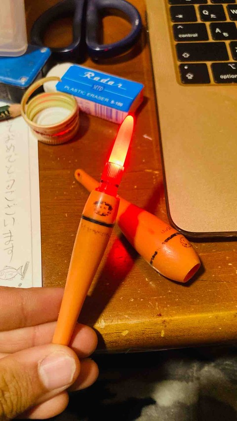 しかしこの浮きは手元のあった小さい電気浮きをサビキの浮きに取り付けたものなので実質改造です。