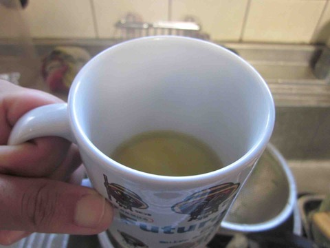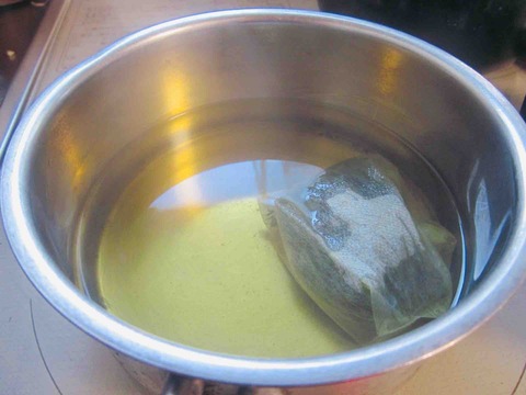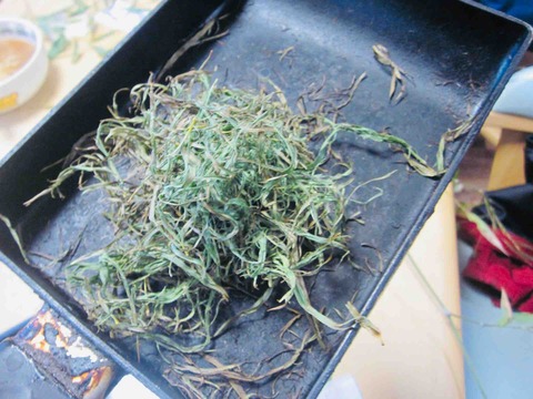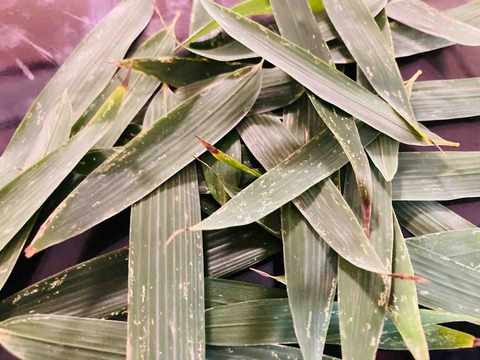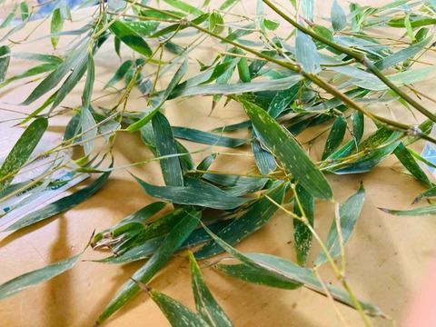 せっかくさっき切ったばっかりの竹もあるということで何本か竹の枝を家に持ち帰り葉っぱをとってそれでお茶を作ってみることにしました。