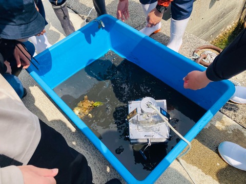 実際の透明度はおよそ10mほどでした。この透明度は海中のプランクトンや栄養塩の量によって変化するということが知られており瀬戸内海では近年プランクトン・栄養塩の量が減少し、透明度が高くなっていることが問題となっているそうです。