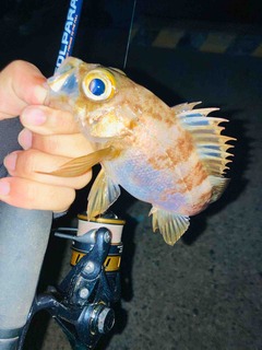 釣り開始からずっと足元を狙っていたので気分転換にちょっと投げて中層を投げてみるとフォールが止まりラインが走って合わせてみるとメバル。
