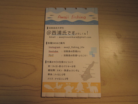 最近は釣り場でYoutubeの視聴者の方と遭遇することが結構あるので名刺代わりにこれを渡せばいいんじゃぁないでしょうか。ただ、作るのが大変…