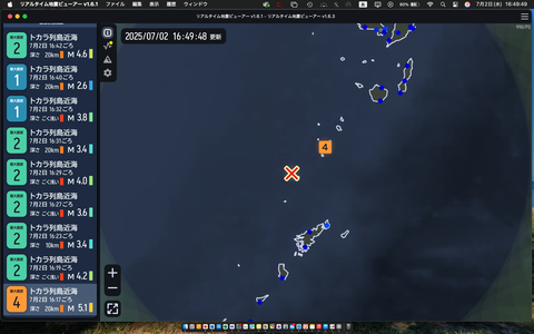 先月から今月にかけて日本の南、鹿児島県のトカラ列島付近で地震が頻発しています。