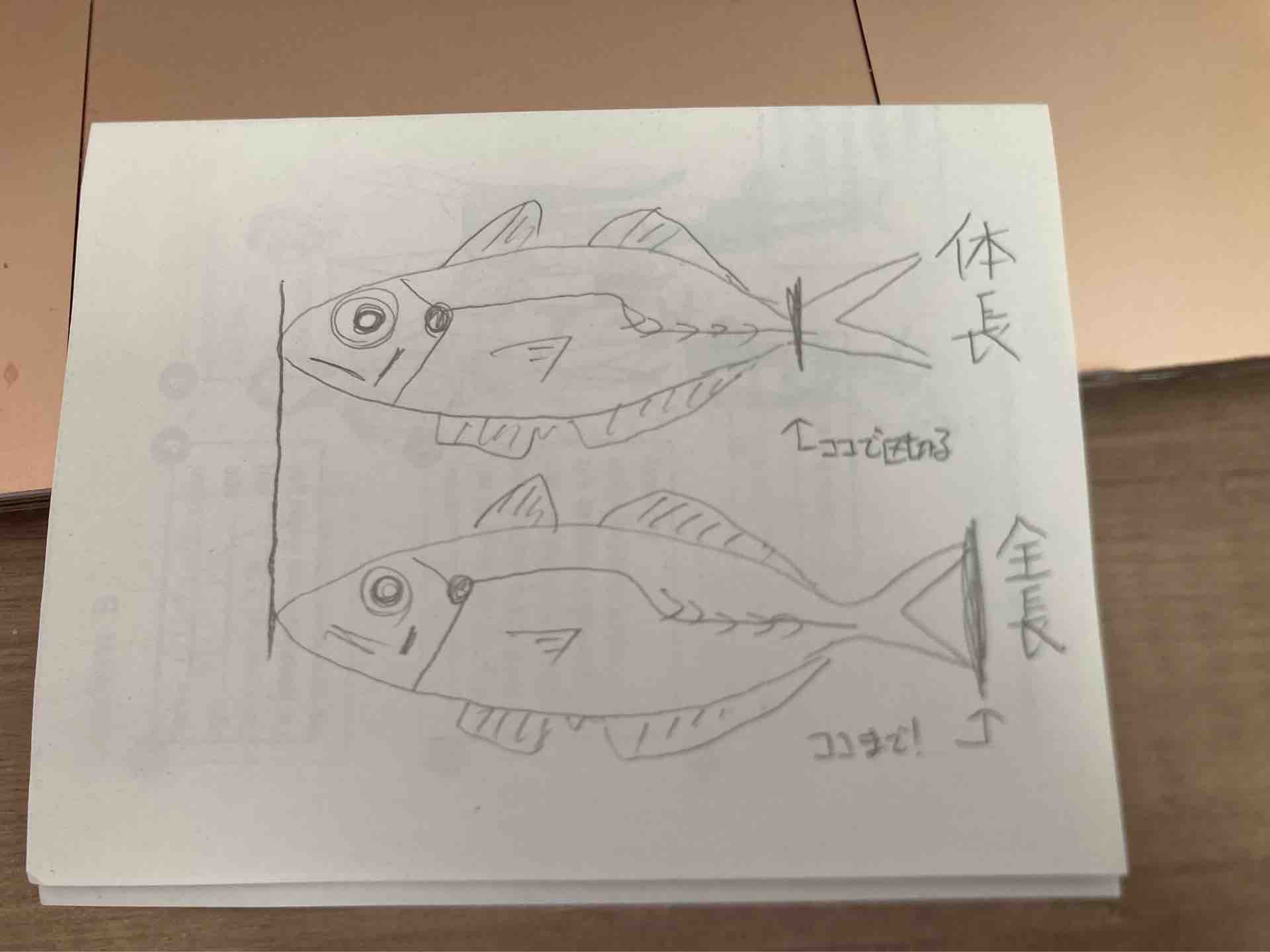 体長(標準体長)とは魚でいうと頭から尻尾の付け根ぐらいまでのことを言うそうです。