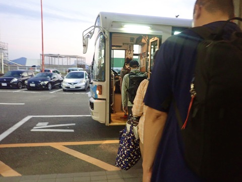 船を降りて案内に身を任せ、連絡バス乗り場へ早足で向かいます。