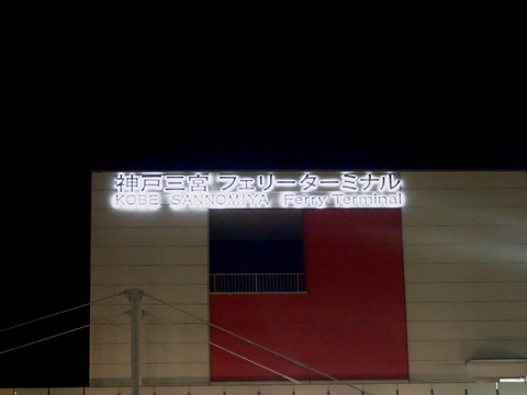 神戸三宮のバス停から神戸側のフェリーターミナルまではバスが出ていますが時間がたっぷりあるので徒歩で移動します。さすがに150万人都市の夜も11時前後になると徐々に人も減ってくるようで駅から離れるに従って人はまばらになります。