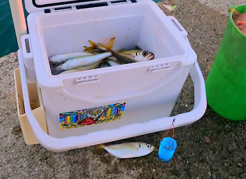 ちなみにこの日は友人氏その1も来ていて、こちらもたくさん釣っていました。ちなみに彼は釣りすぎたとか言って私のクーラーに勝手にアジをほり込んでました笑