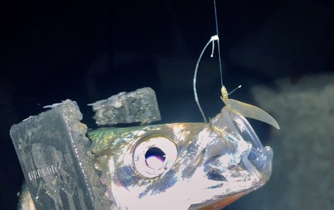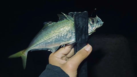 ただ、10時半を超えて潮が緩んだタイミングでポツポツアジの反応が出始め、ようやくアジが掛かり始めました。
