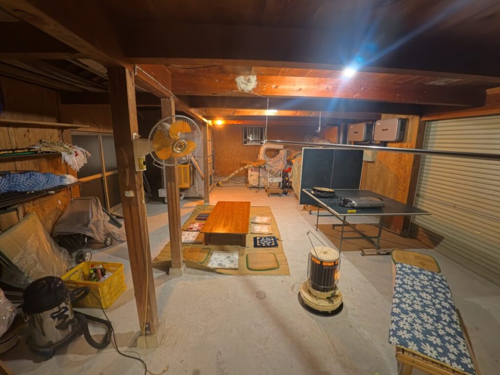 夜は普段、物置小屋状態になっている納屋を少し片付けて焼肉!