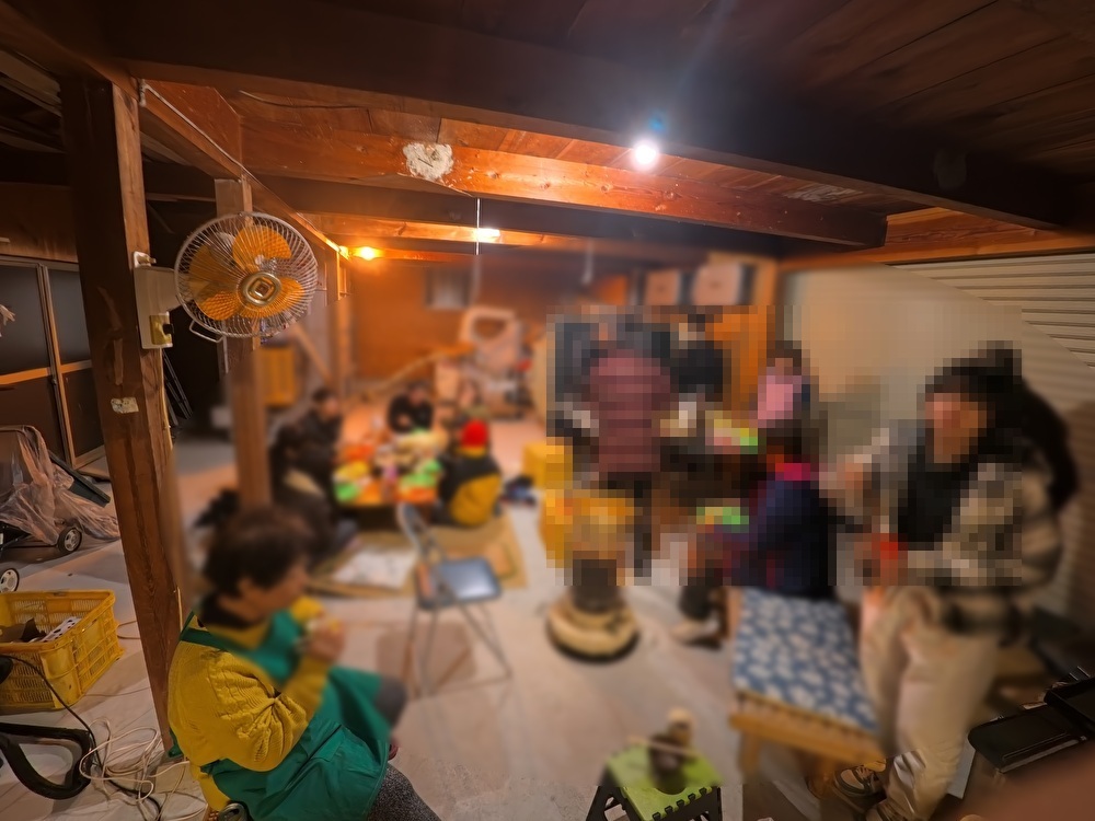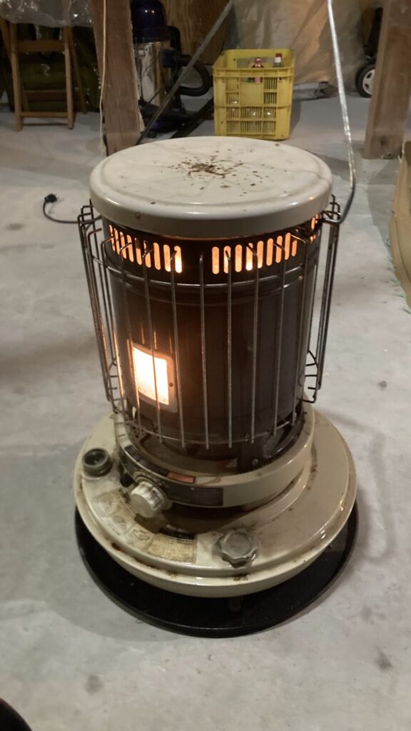 やっぱり半分外みたいな場所でするのでだるまストーブを置いて暖をとっています。(一酸化炭素中毒に注意して換気も実施)