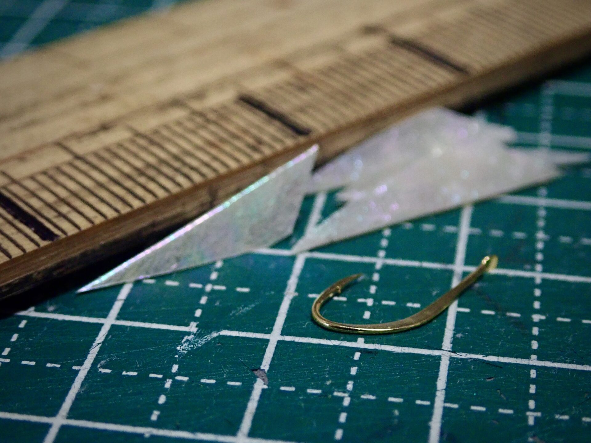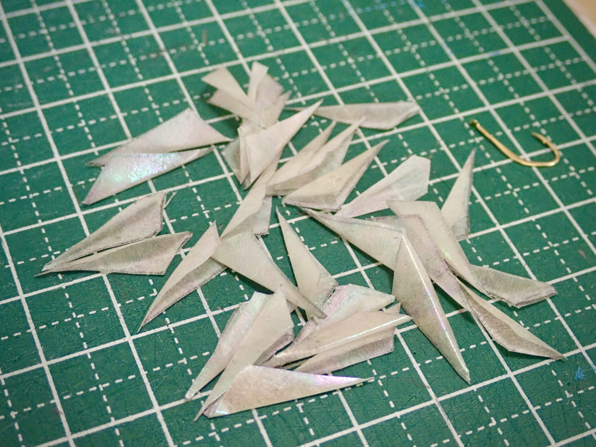 オーロラハゲ皮をカットすることができたら、次は針にカットしたオーロラハゲ皮を接着していきます。