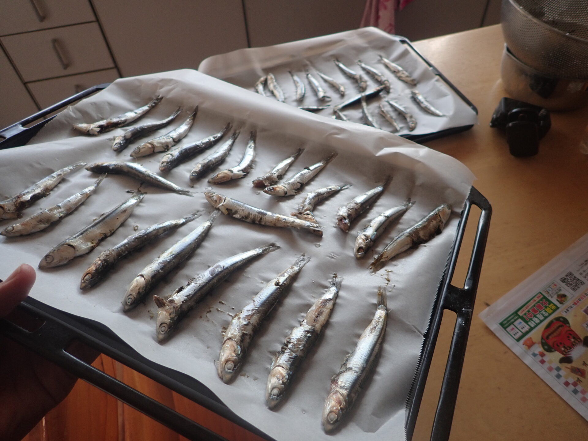冷凍して餌にする予定でしたが数があったのでオーブンを使って煮干しにしてみました。