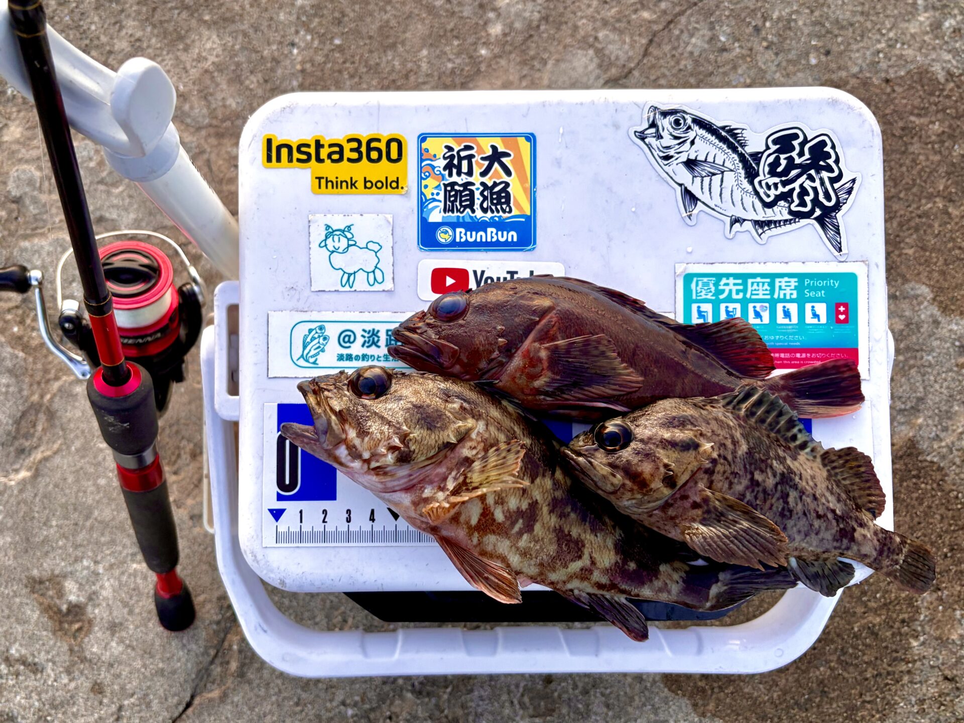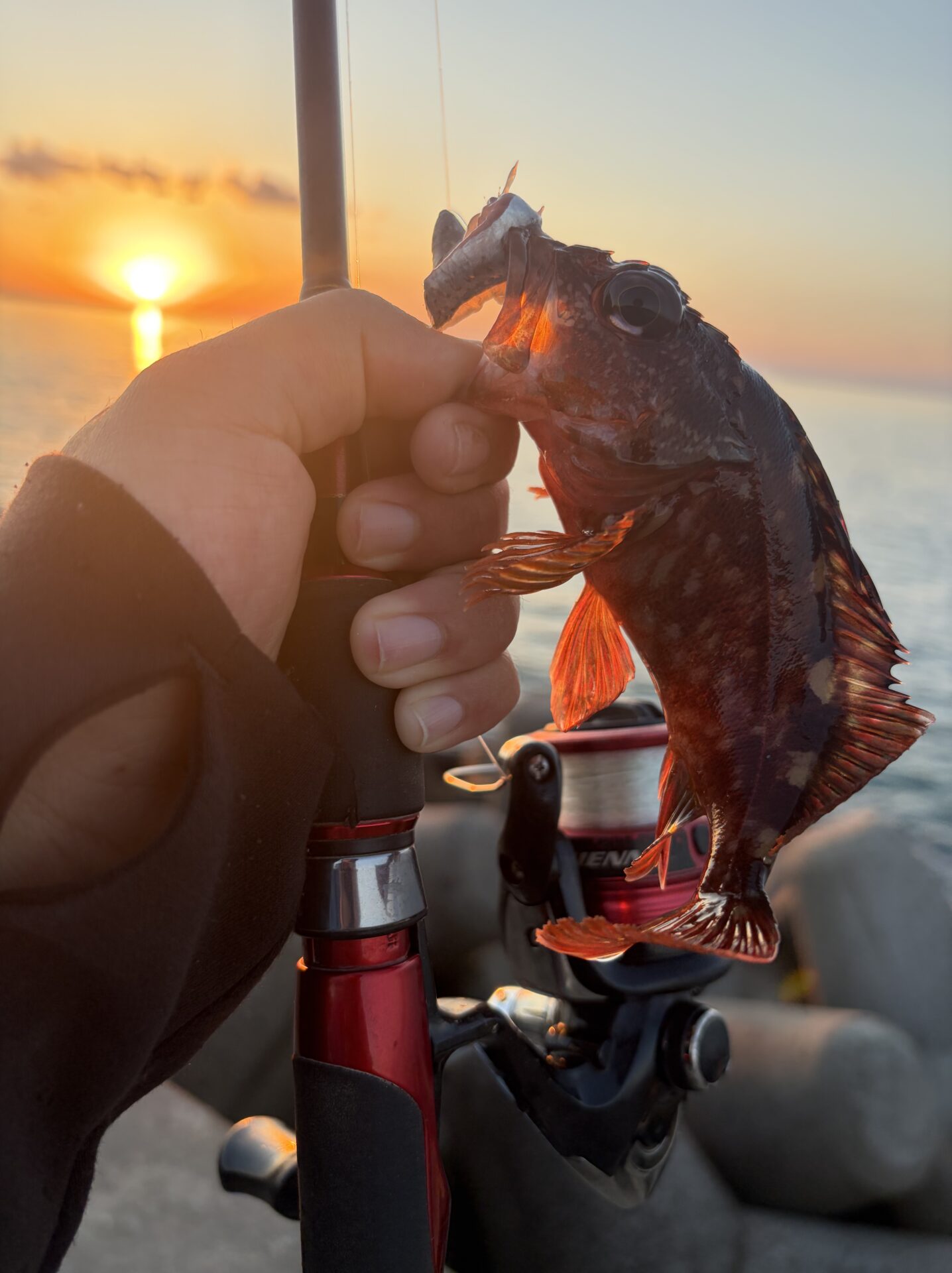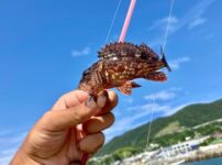 で、その後もまた小型がパラパラ釣れたりしたんですが、なんと納竿直前にギリギリ20センチを超えた中型のガシラがなんとか釣れてくれました!!