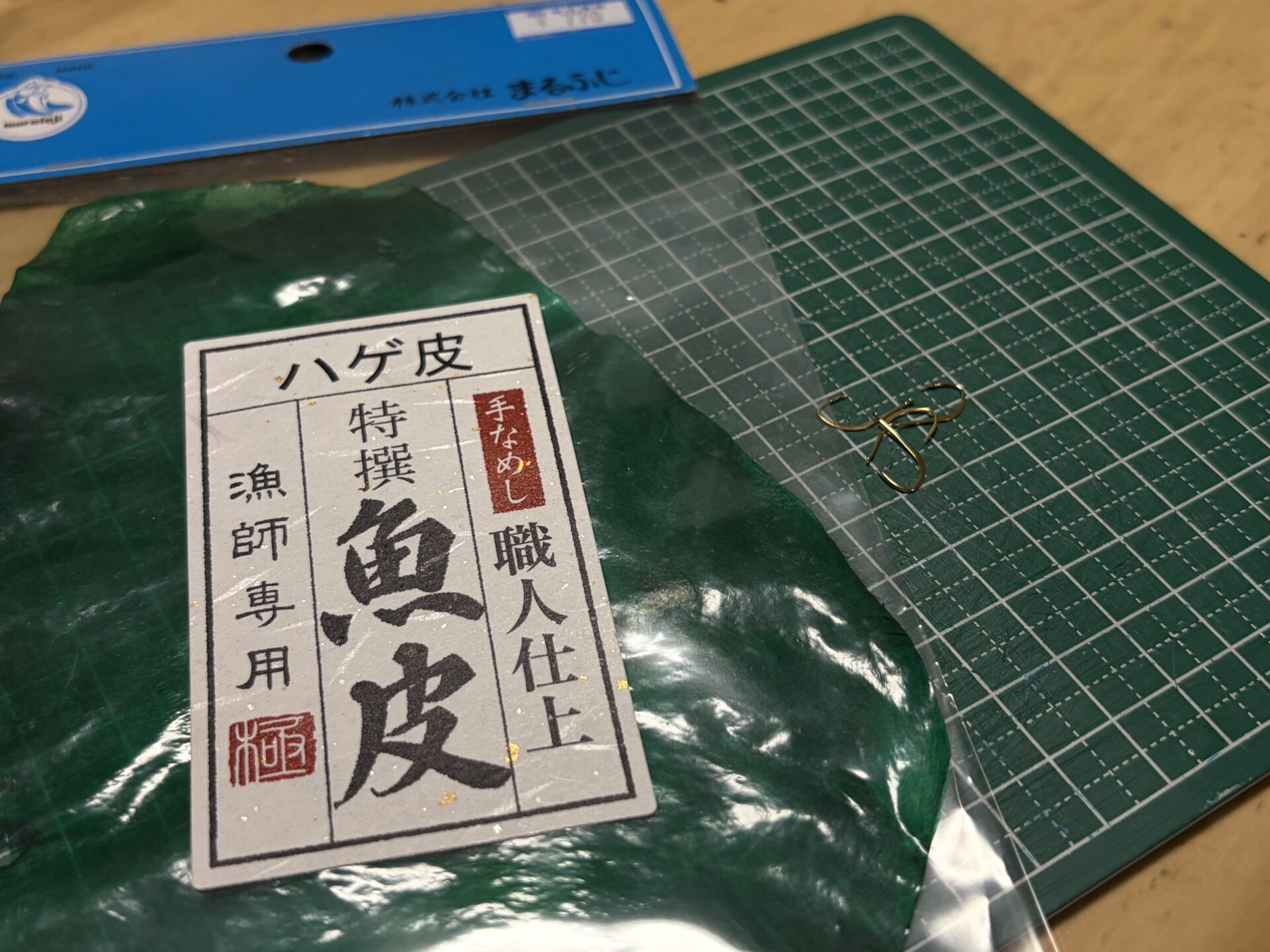 緑色のハゲ皮:(今回はマルフジさんの特選魚皮シリーズのハゲ皮緑色を用意しました)