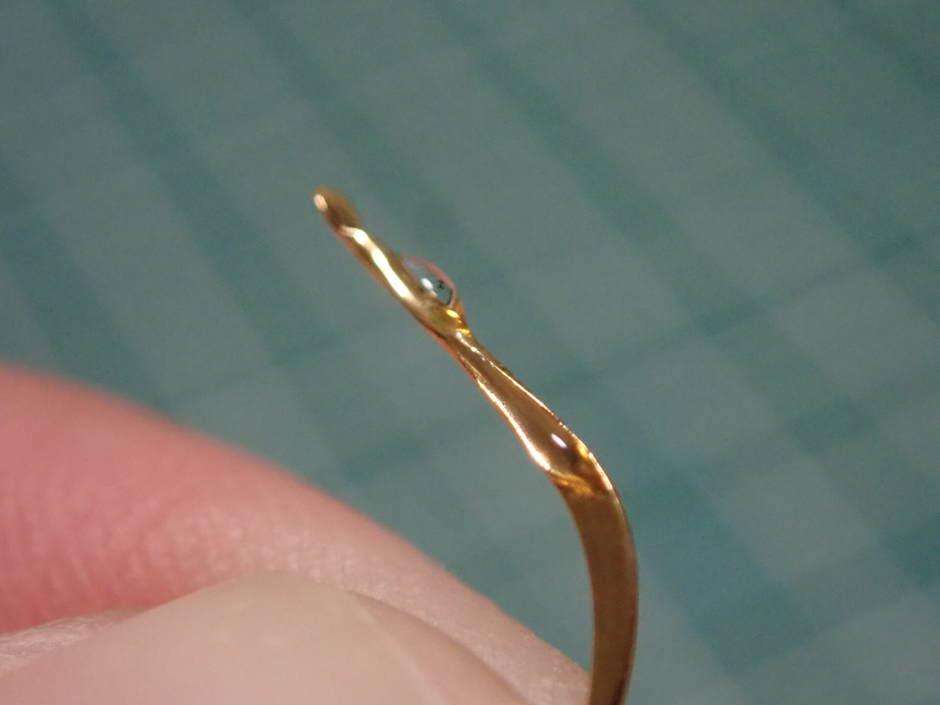 接着する際は針をこのように摘み、