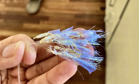 なんなら自分でケイムラのサビキを自作するためにスキンやフラッシャー、針などを揃えて製作したことも何度もあります。