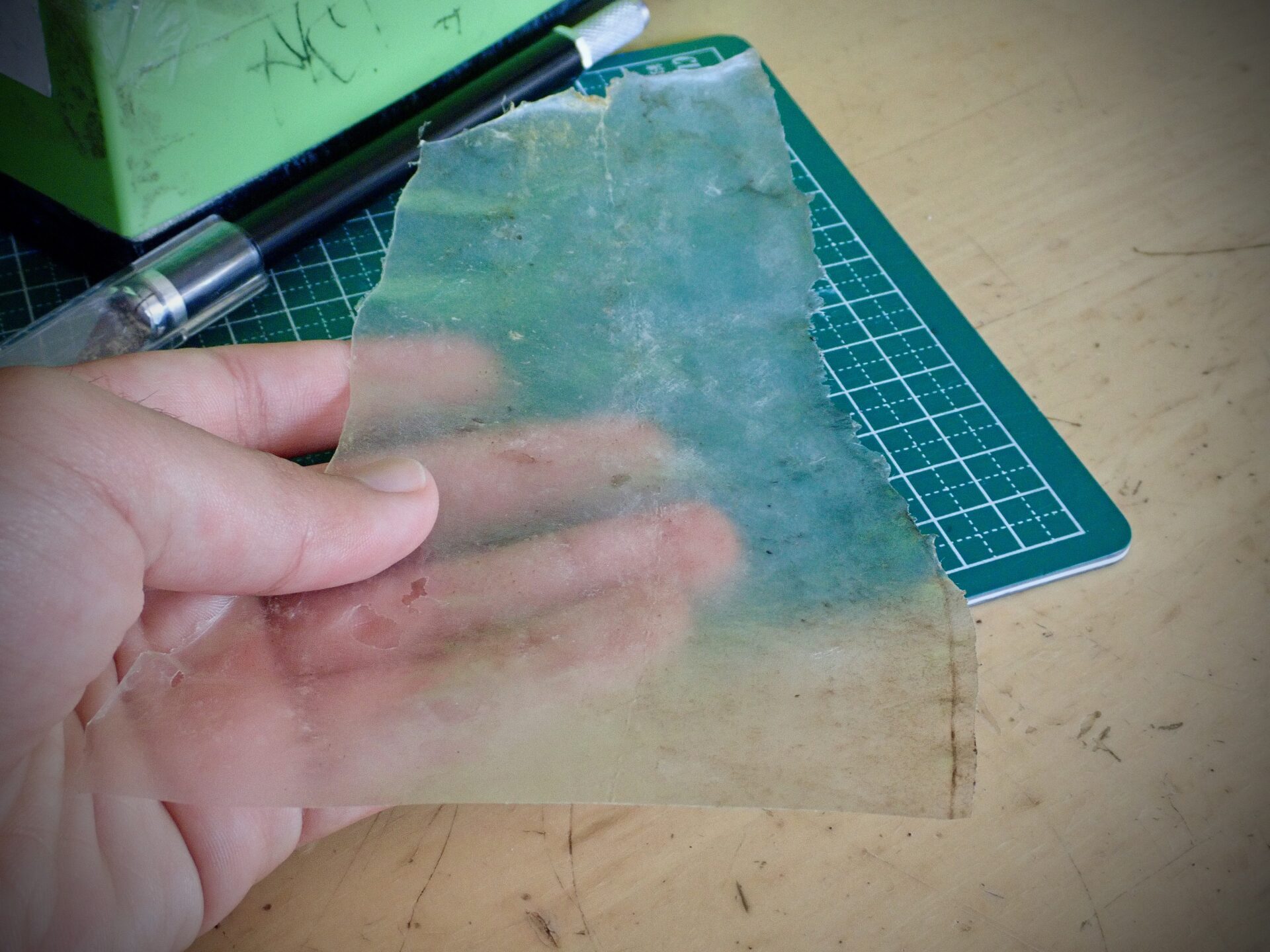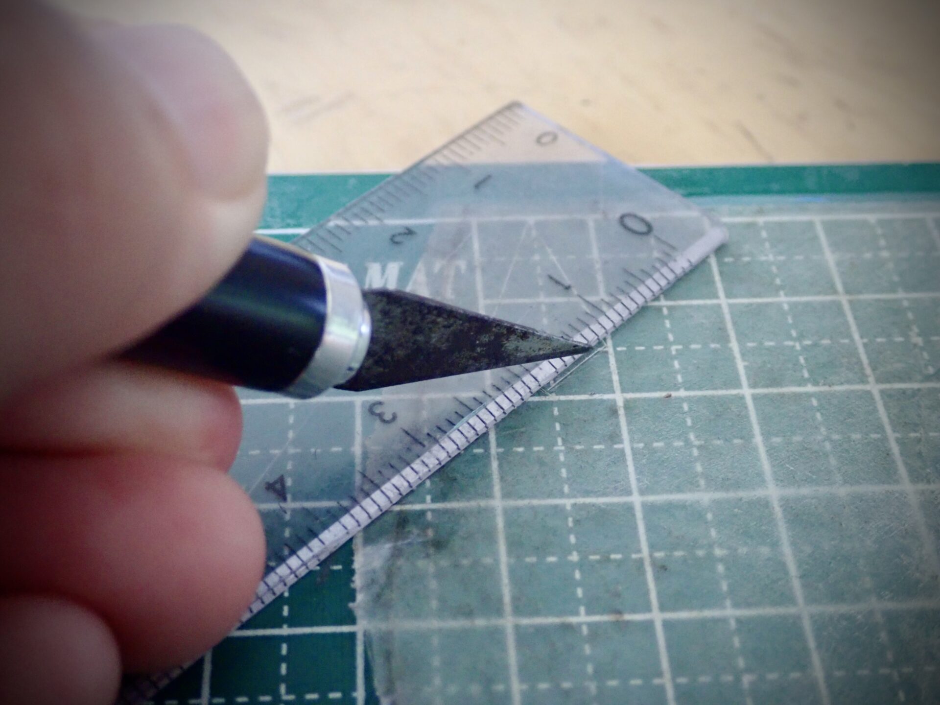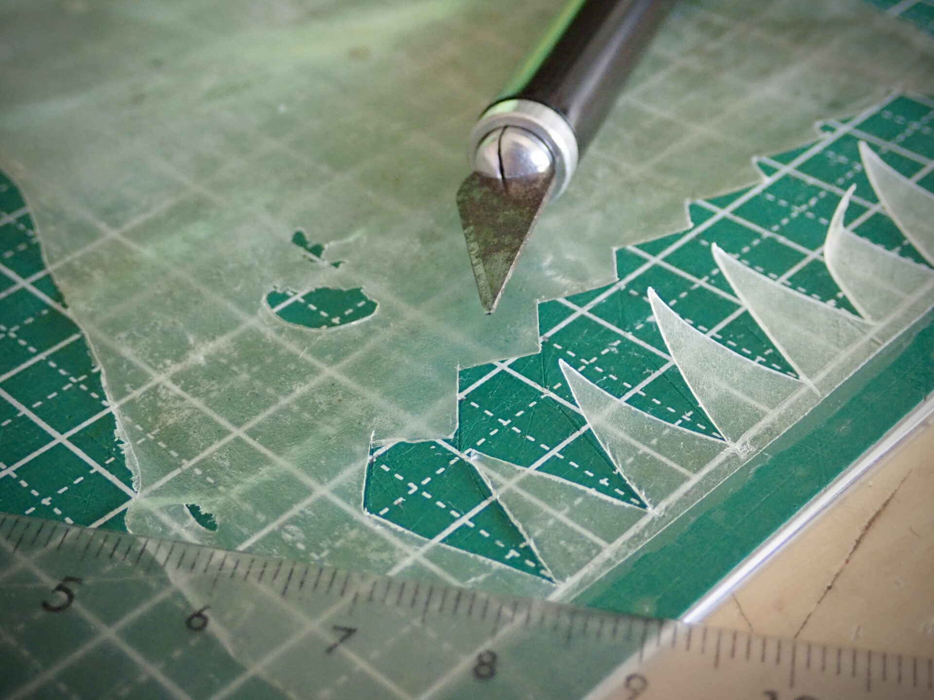 では、定規とデザインナイフを使って早速ナマズ皮を切り出していきましょう。