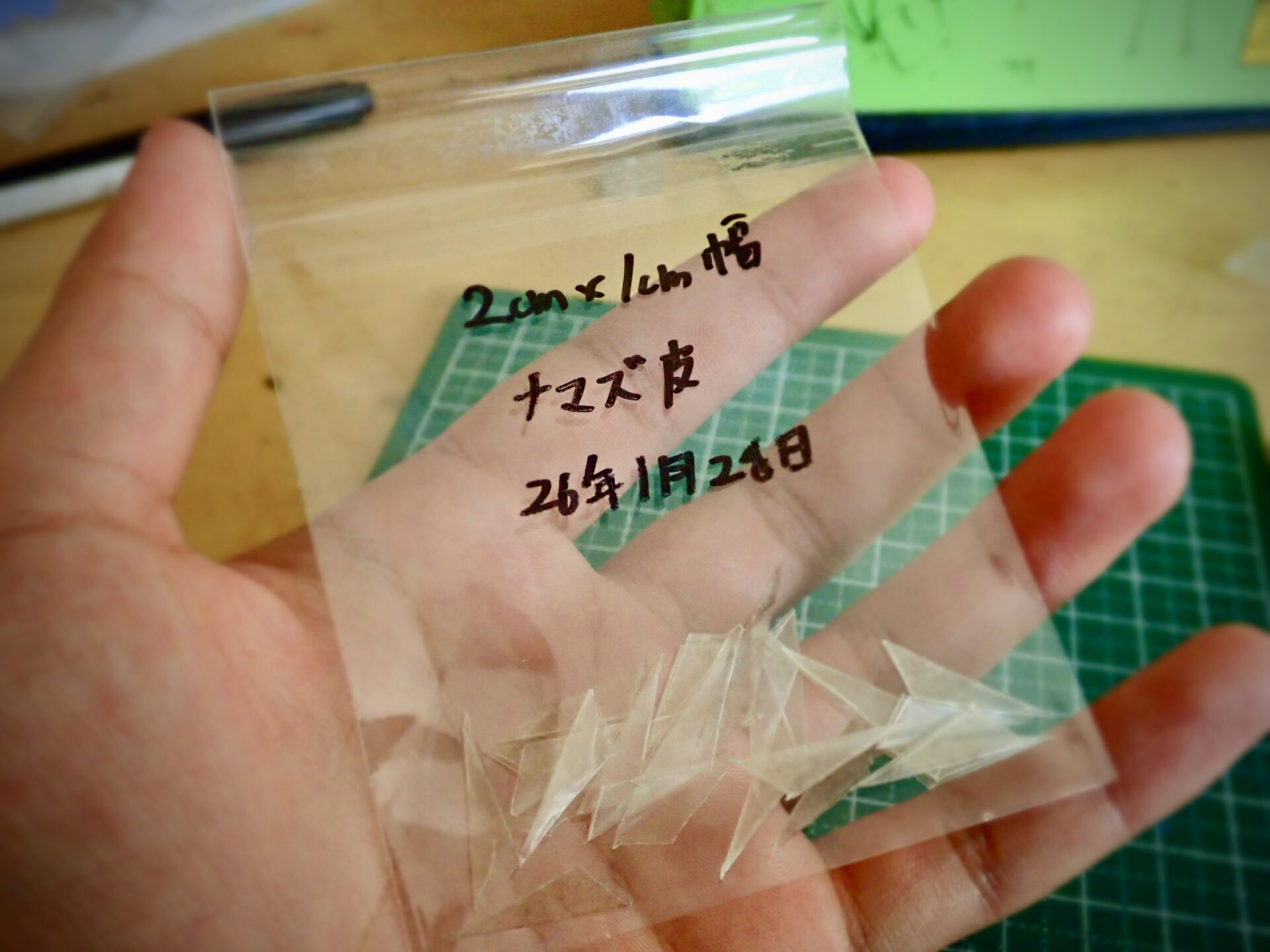 なお、時間の都合上、ナマズ皮の整形までしか今回は作業を進めることができなかったので続きは後日また別記事にて紹介を進めます。