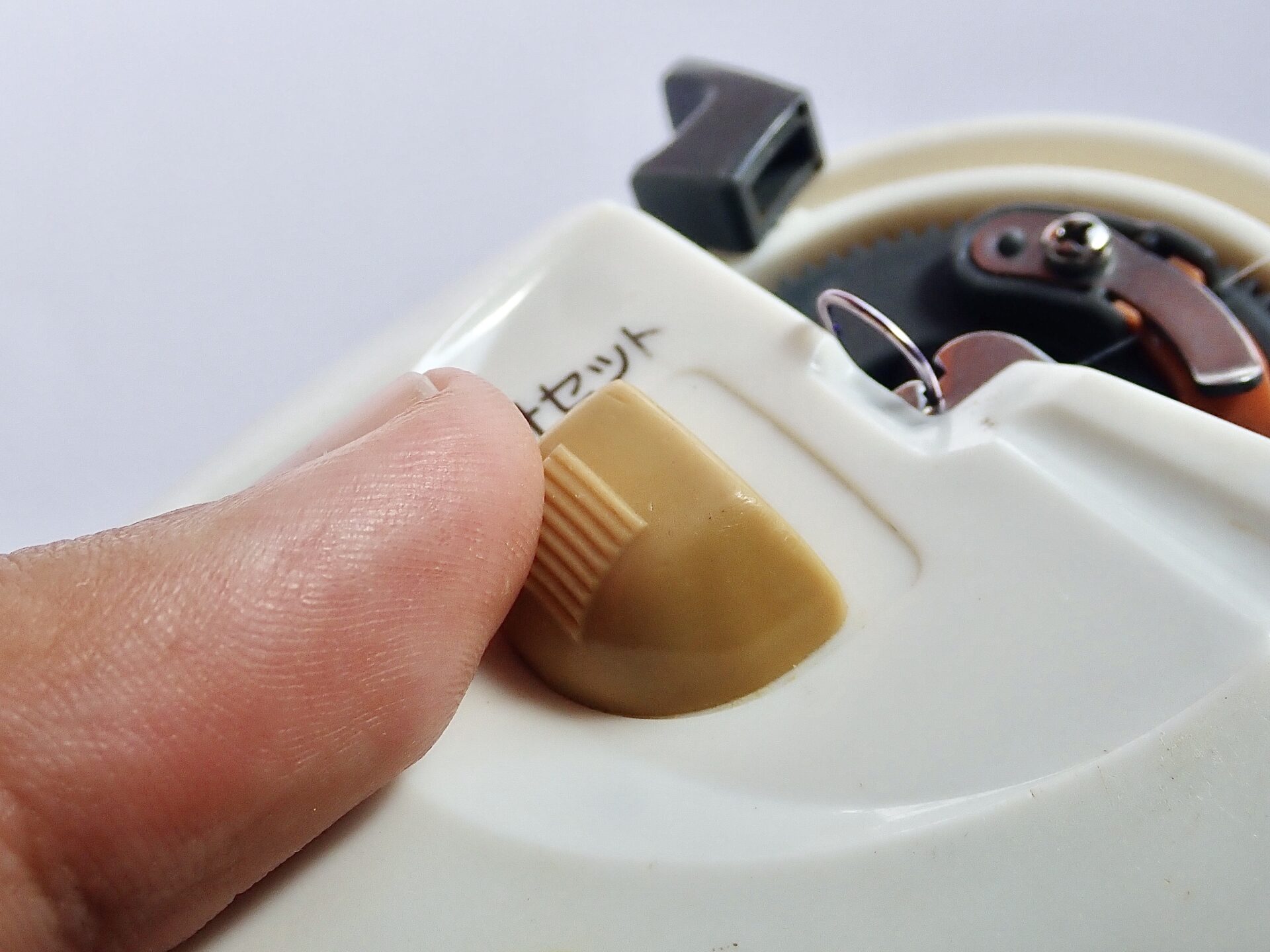 側面上部にあるこちらのパーツをスライドさせて糸を巻いていきます。