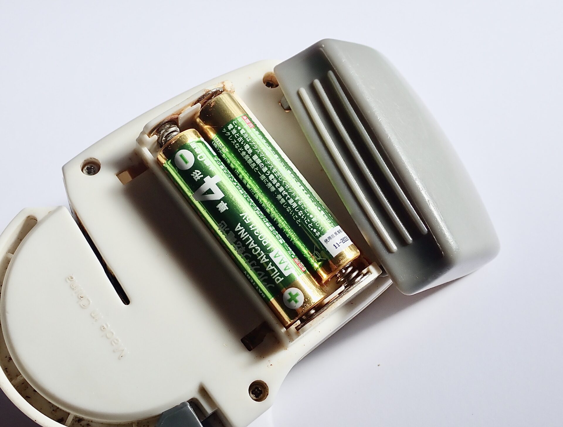 上の写真を見ると電池ボックスの金属パーツがやや錆びかかっているのがわかると思います。