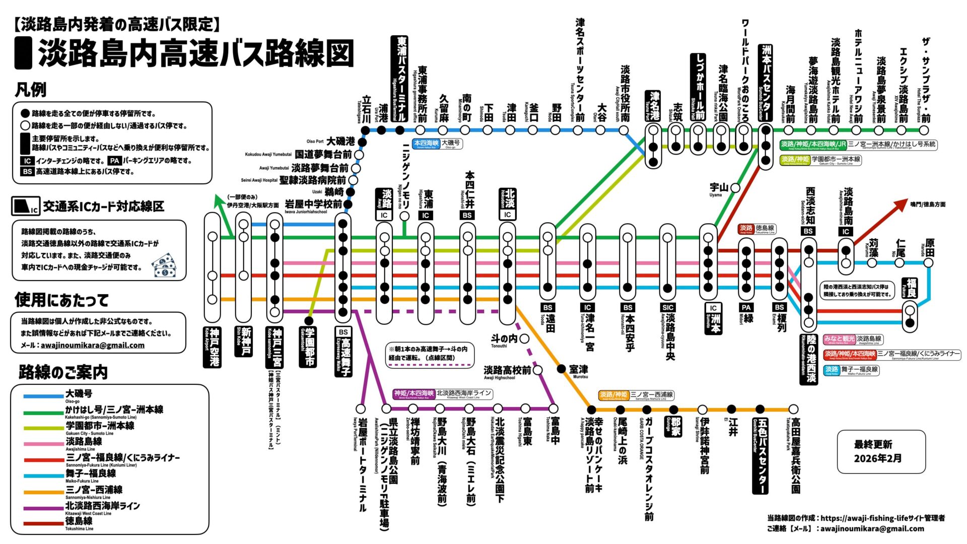 淡路島のバス路線図【西浦氏作成ver】(高速バス路線のみ)