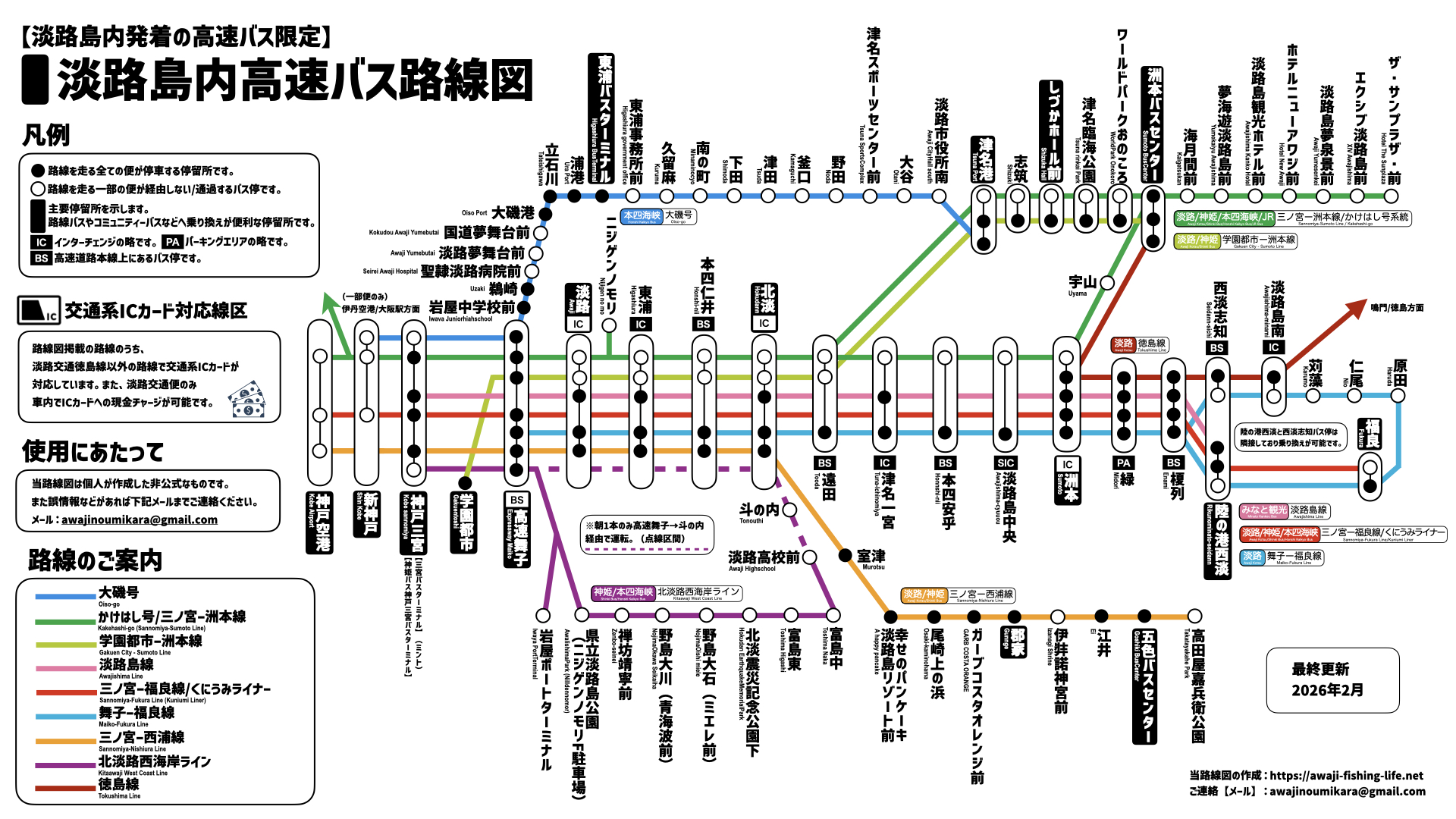 インターネット上にも結構転がっている淡路島の高速バス路線図ですが、イマイチ情報量が多くて見にくかったり、