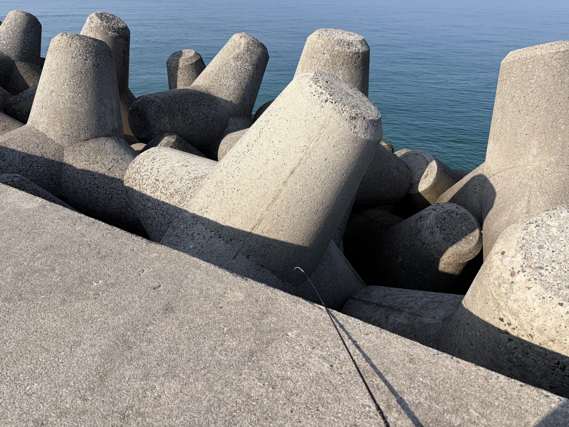 先ほどのガシラが釣れた穴のすぐ近く、再び目星をつけていたテトラの穴を置き竿戦法でじっくり狙っていると小さな当たりがありました。