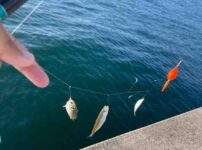 それゆえ小鯖などが混じって回遊している場合、頻繁に針を取られることに繋がります。市販品には豆アジ用の針ですがハリスだけ太くなった極太の仕掛けもあるのでそちらを使うことで対策をしましょう。