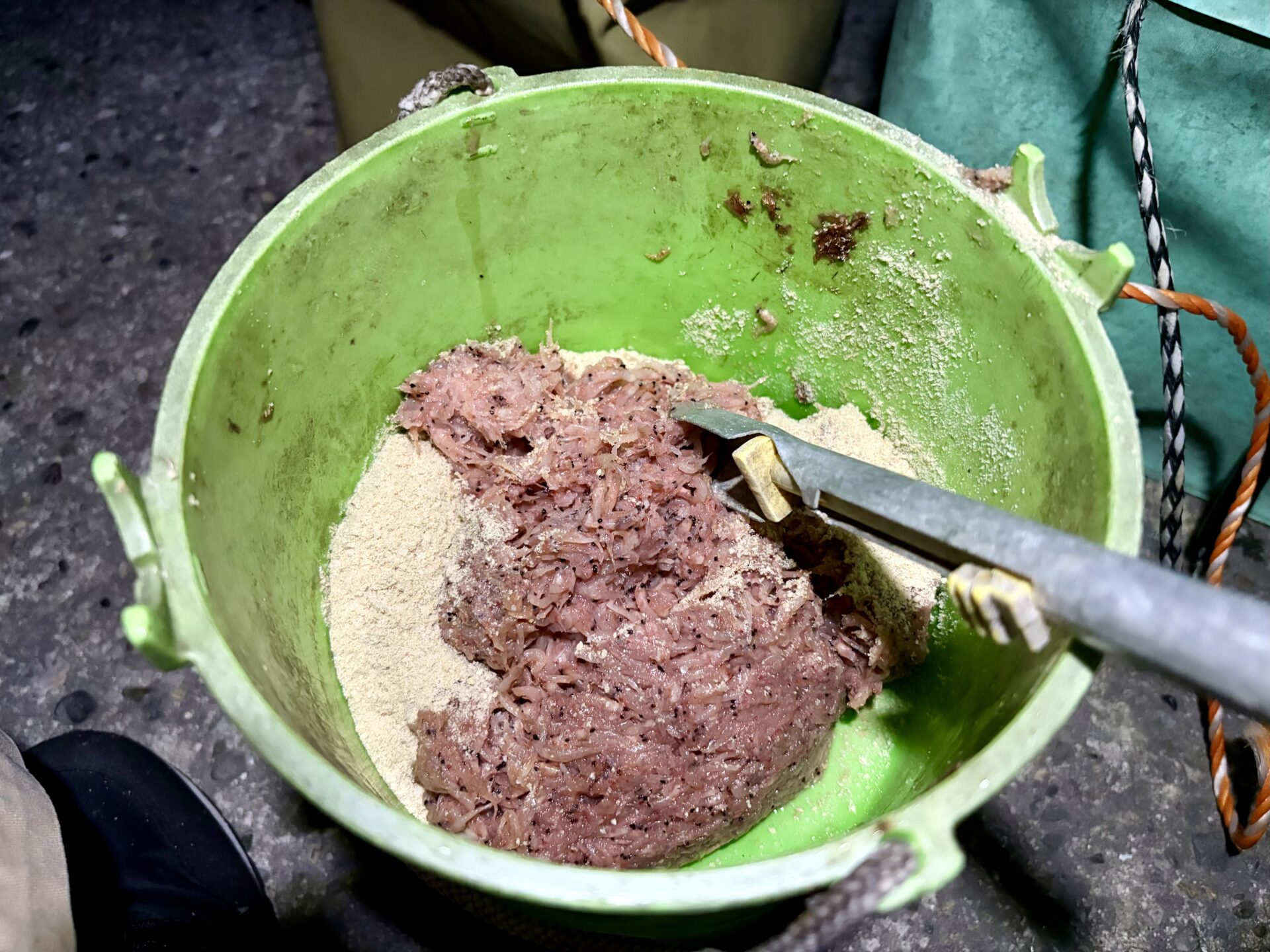 この間の記事でも書きましたが今回はアミエビにヌカを混ぜて釣ります。